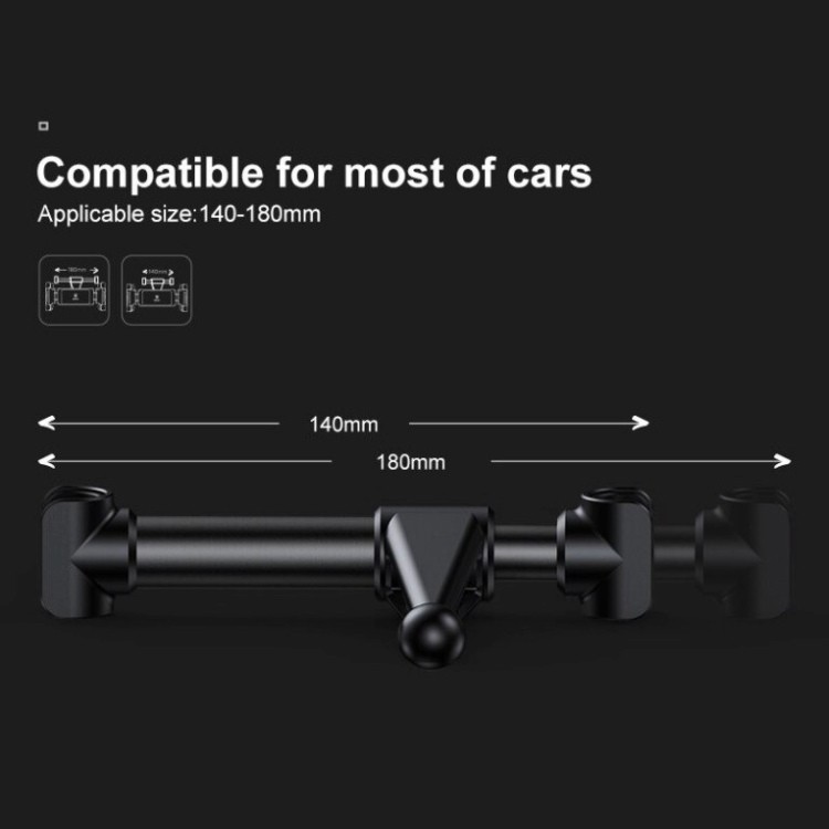 1. Materials: ABS + PC + Aluminum alloy 2. Suitable for phone and tablet with 4.7-12.9 inch screen 3. Support the diameter of headrest rod:≤14mm 4. 360 degree rotation 5. Anti-slip design 6. Color: Black