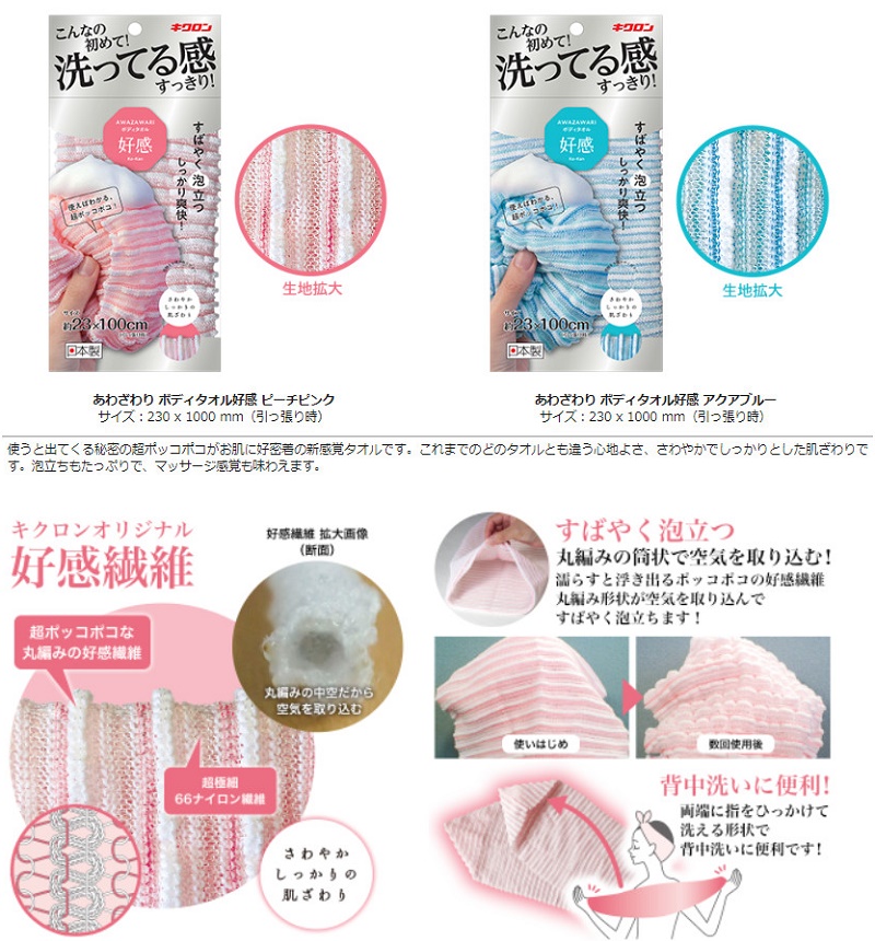 - Một chiếc khăn cho cảm giác bám dính tốt trên da với công thức tạo bọt mới Pokkopoco, tạo bọt mịn nhanh chóng.