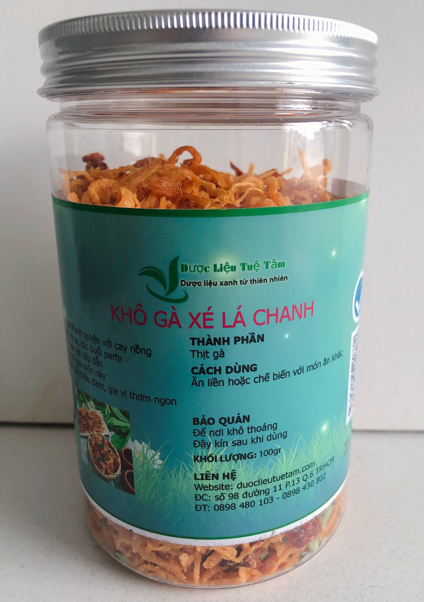 KHÔ GÀ XÉ LÁ CHANH THƯỢNG HẠNG Xuất xứ: Việt Nam. Hạn sử dụng: 12 tháng kể từ ngày sản xuất. Quy cách đóng gói: hủ nhựa pet cao cấp Khô gà lá chanh