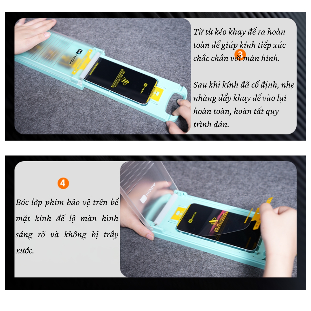 - Hoàn tất: Kéo khay dán nhẹ nhàng, đẩy nhẹ để kính bám chắc, sau đó bóc lớp bảo vệ. Với Kính Cường Lực HODA 3D Curved, bạn không chỉ bảo vệ toàn diện màn hình mà còn giữ nguyên vẻ đẹp đẳng cấp của chiếc iPhone. ️ Sản phẩm dành cho những ai yêu cầu sự hoàn mỹ và độ bền vượt trội!
