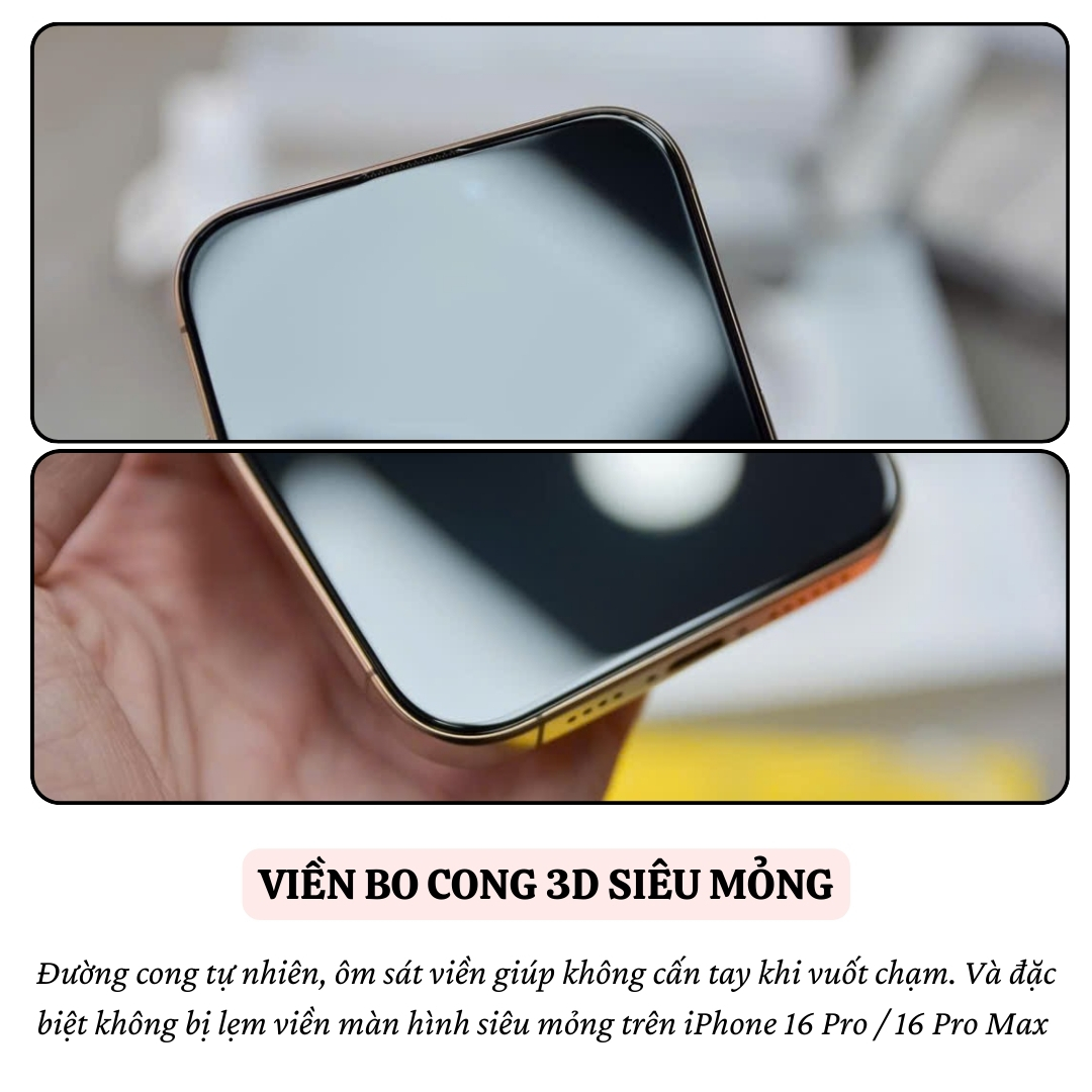 Dán cường lực Hoda 3D Curved iPhone 16 Pro Max | Không lẹm viền đen