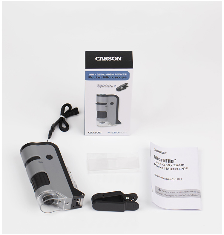 Hãng Carson USA giới thiệu tới Quý khách hàng kính hiển vi mini Carson MicroFlip MP-250. MicroFlip MP-250 là một kính hiển vi bỏ túi có đèn LED cực mạnh, chứa đế trượt xuống độc