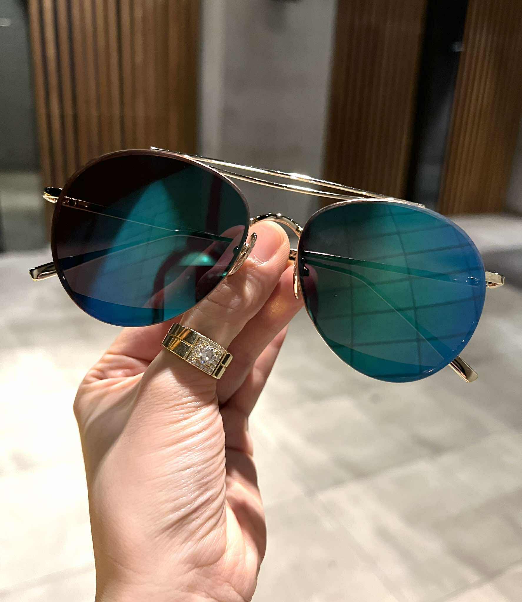 ✨Kính râm nam nữ thời trang chống nắng Mắt xanh tráng gương form nhỏ sành điệu
