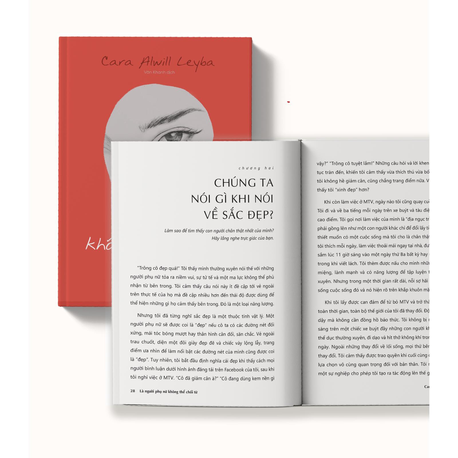 Giới thiệu sách: “Việc phần lớn thời gian mọi người bị ngoại hình thu hút, ít nhất là vào lúc ban đầu, không có gì bí mật. Vấn đề ở đây là, dù người phụ nữ hấp dẫn đến mấy theo cách hiểu thông thường, sự hấp dẫn đó sẽ không bền vững nếu cô ấy không toát ra thứ năng lượng có sức hút, đẹp đẽ từ bên trong.” Thứ năng lượng bí ẩn này chính là “sự tự tin bền vững”, được xây dựng bằng niềm tin mạnh mẽ, sự thấu hiểu và công nhận bản thân, không bị áp đặt bởi bất cứ khuôn mẫu nào. Cuốn sách dành cho những người phụ nữ khao khát sống thật và tỏa sáng theo cách của riêng mình. “Là người phụ nữ không thể chối từ” là cuốn cẩm nang “đắc lực” để bạn hiện thực hóa khát vọng của mình, thông qua các công cụ: 8 chiến lược xây dựng tự tin theo từng khía cạnh cuộc sống. Hàng chục câu thần chú sức mạnh gạt bỏ âu lo và thêm cảm hứng tích cực. Bài tập thực hành giúp nhận diện và tái lập trình suy nghĩ. Bảng theo dõi thói quen tích cực hỗ trợ đánh giá tiến trình thay đổi của bạn. Một khi bạn biết rõ giá trị của mình, cả thế giới sẽ phải để mắt đến bạn. Cuốn sách này rất hân hạnh cùng bạn vươn mình và tỏa sáng ở thế giới ngoài kia! Về tác giả: Cara Alwill Leyba Nhà khai vấn, người dẫn chương trình podcast, diễn giả và là tác giả của những tựa sách bán chạy về chủ đề truyền cảm hứng, xây dựng phong cách sống và thương hiệu cá nhân cho phái đẹp. Cách tiếp cận hài hước và hấp dẫn của cô đã thu hút hàng nghìn phụ nữ đọc sách, viết blog, tham dự các sự kiện và hội thảo do cô tổ chức trên toàn thế giới.