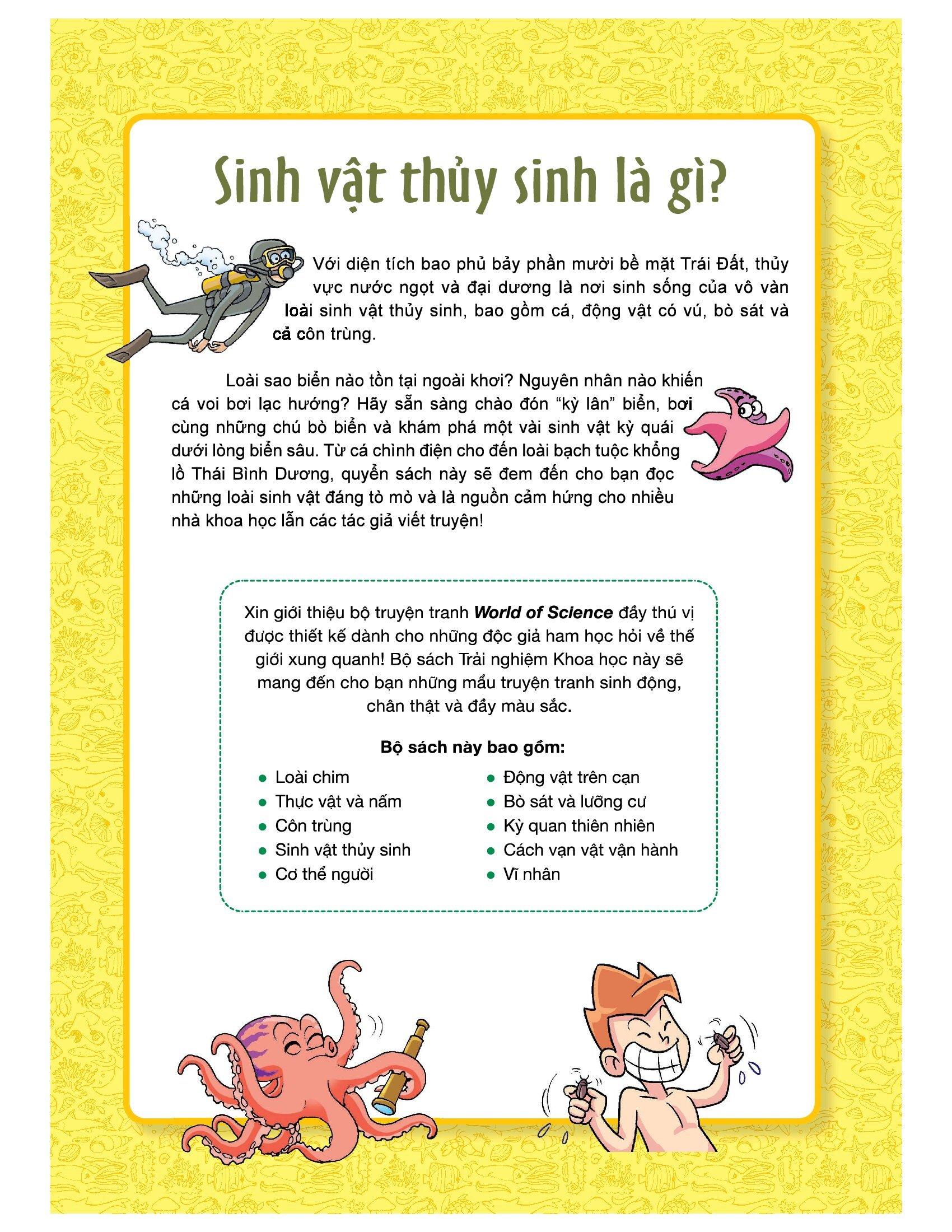 “World of Science” là bộ truyện tranh được biên soạn bởi WS Education, đơn vị xuất bản hàng đầu cho trẻ em tại Singapore và là công ty thắng giải “Best Education Title” tại “Singapore Book Awards” (“Tác phẩm Giáo dục Xuất sắc nhất" thuộc "Giải thưởng sách quốc gia Singapore") trong 3 năm liên tiếp. Bộ truyện gồm 10 tập, dành cho trẻ từ 6 tuổi trở lên, mỗi tập bao hàm một chủ đề thú vị: Loài chim; Thực vật và nấm; Côn trùng; Sinh vật thuỷ sinh; Cơ thể người; Động vật trên cạn; Bò sát và lưỡng cư; Kỳ quan thiên nhiên; Cách vạn vật vận hành.