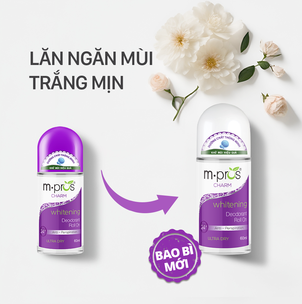 Lăn khử mùi hương nước hoa M.Pros là mùi hương mới trong bộ sưu tập lăn khử mùi M.Pros Whitening. Với hương thơm tươi mới, ngọt ngào cùng khả năng kháng khuẩn, ngăn ngừa tiết