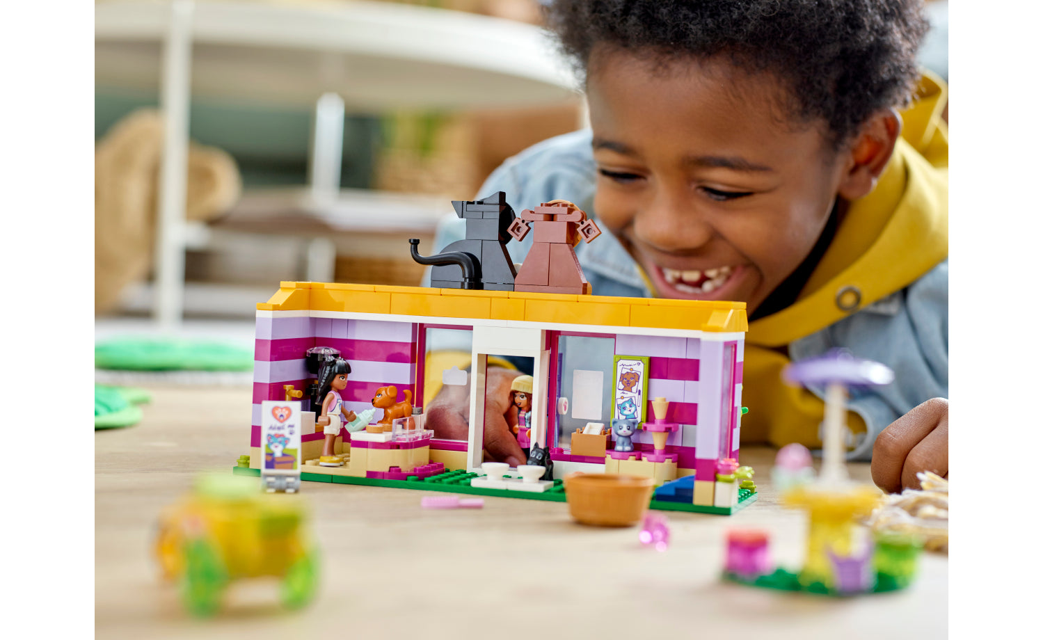 Bộ trò chơi sinh động này, sẽ giúp thúc đẩy trí tưởng tượng và lòng sáng tạo của trẻ, mở ra cho trẻ 1 không gian và 1 câu chuyện thú vị cùng những người bạn của mình khi trải nghiệm trò chơi LEGO FRIENDS. Tại đây, có quán cà phê và khu vực tiếp khách ngoài trời, nơi mà các nhân vật LEGO FRIENDS gắn bó với những chú thú cưng vui nhộn nhất. Trẻ có thể sử dụng những chiếc xe ba gác để đi vòng quanh thành phố để giải cứu cho những chú thú cưng bị bỏ rơi, hoặc cho các thú cưng tập thể dục trong phòng tập.