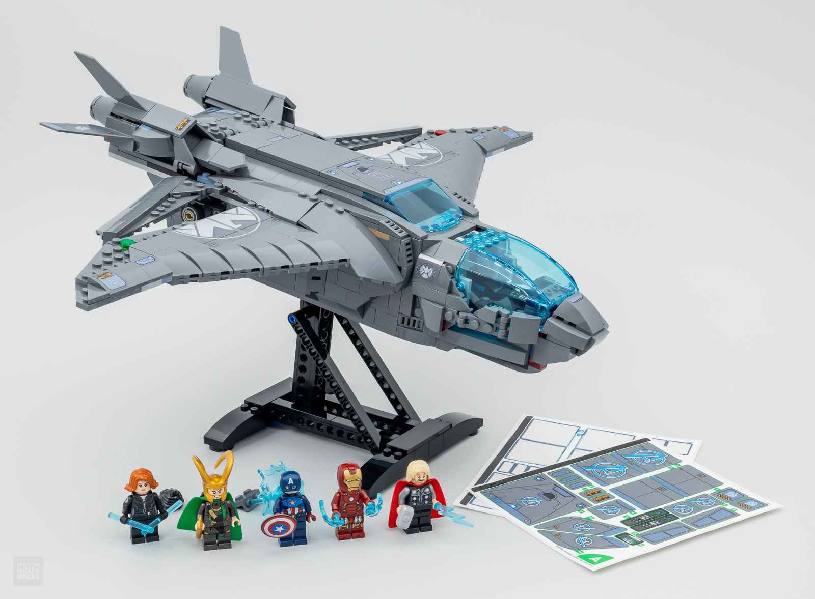 - Bao gồm 5 mô hình nhỏ LEGO Marvel Avengers: Góa phụ đen, Thor với cây búa, Người sắt, Đội trưởng Mỹ với chiếc khiên và Loki với quyền trượng