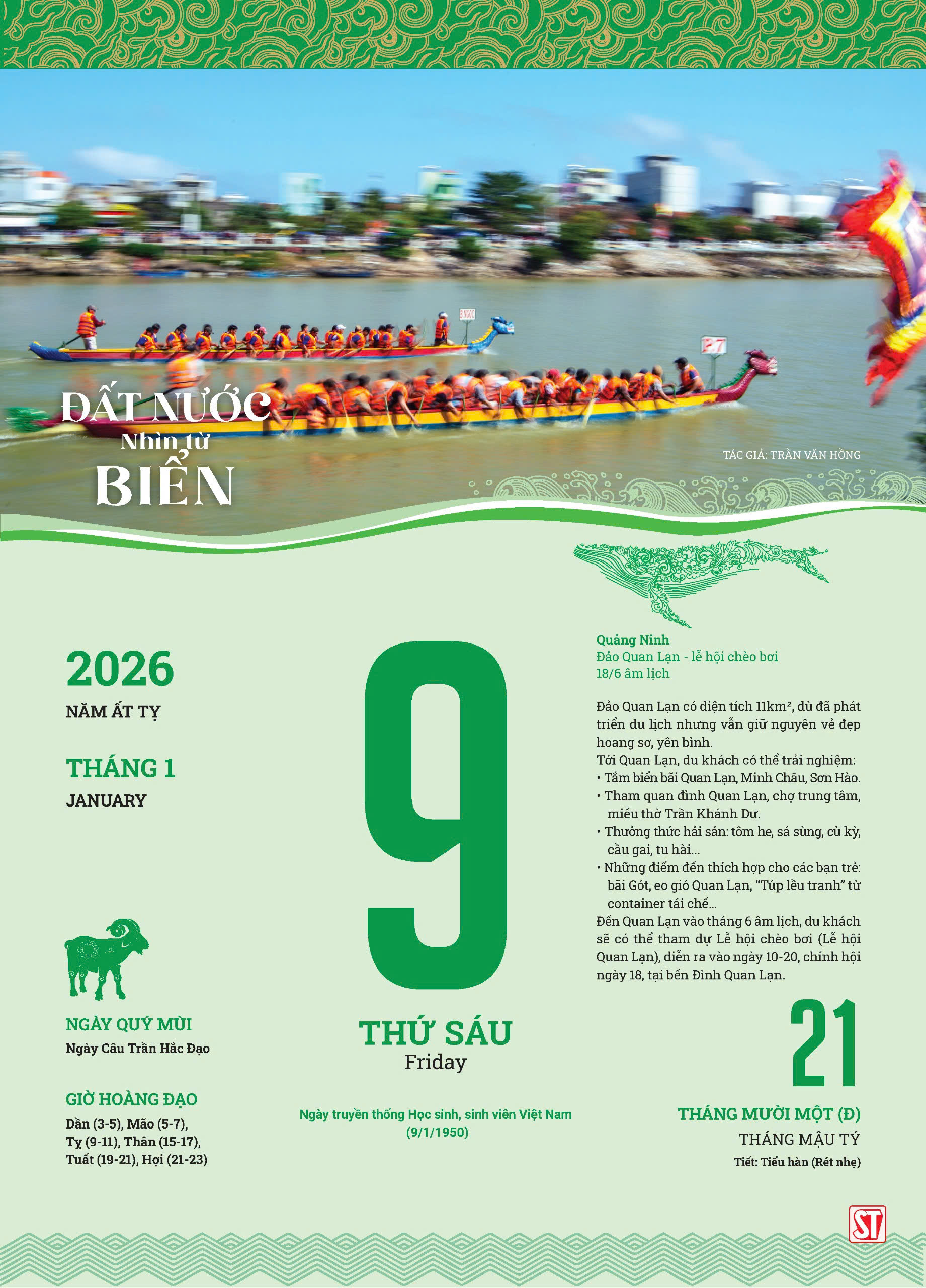 Lịch Blốc 2026 “Đất nước nhìn từ biển” Quy cách kỹ thuật KT: 25 x 35 cm - Giá: 400.000 - In 4 màu trên giấy couches 64gsm - Bìa in bằng công nghệ mới