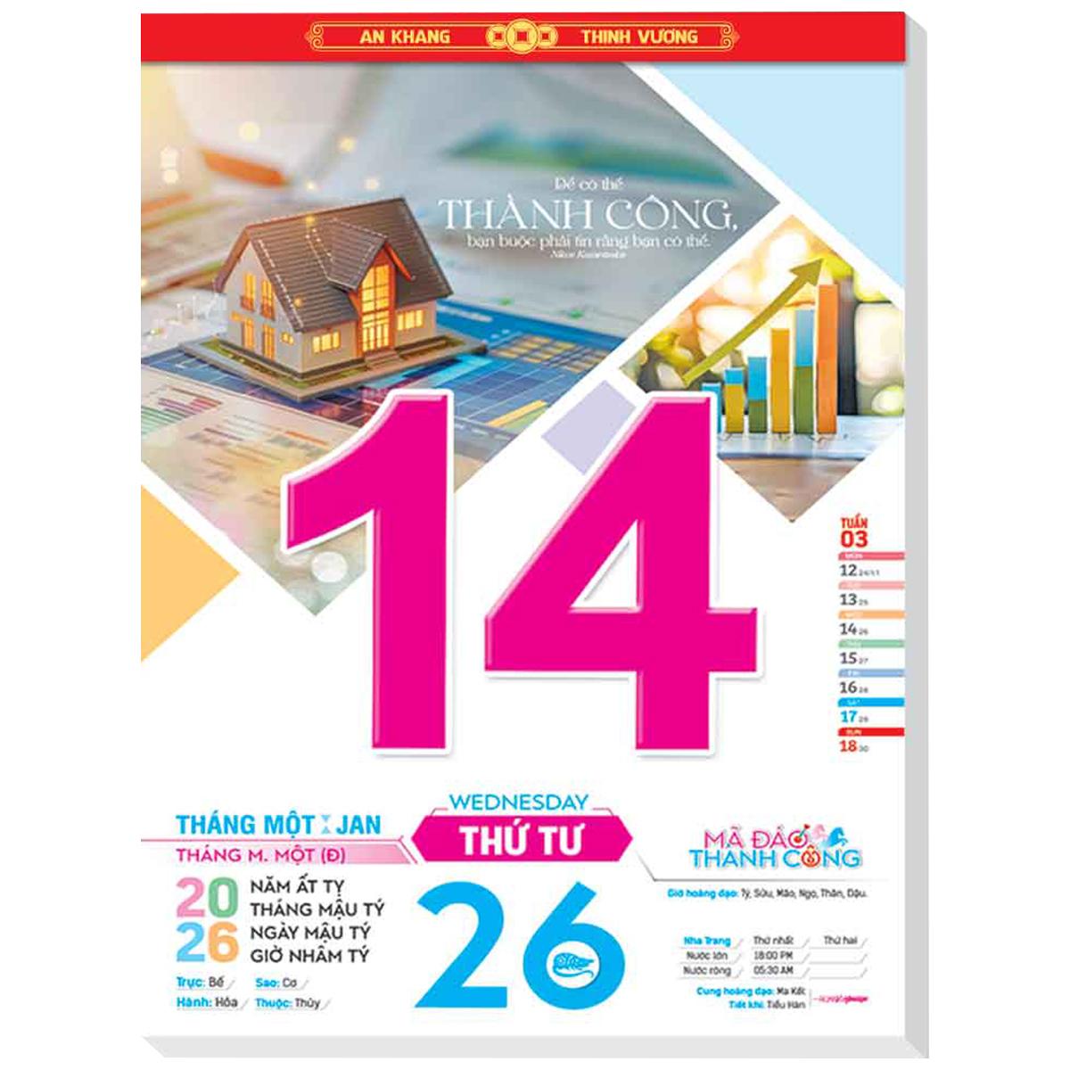 Lịch Bloc Cực Đại 2026 - Việt Nam Quê Hương Tôi - Thành Công - Đại Việt Á DVA05 - Chữ Phúc - Lịch bloc giúp bạn nắm rõ ngày dương, ngày âm, tiết khí,
