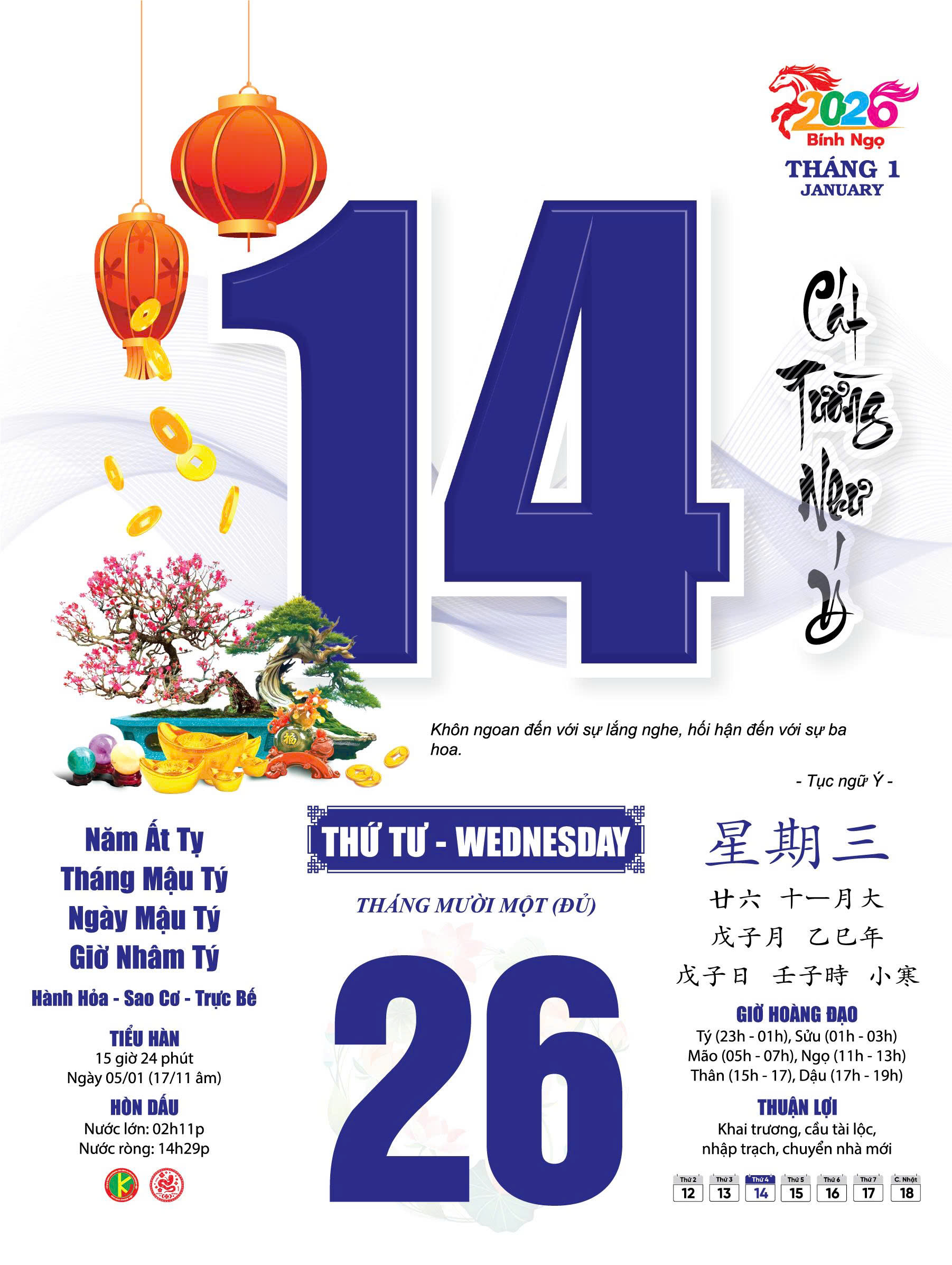- Quyển Bloc lịch 2026 dùng gắn vào các loại bìa lịch treo tường, thay thế Bloc năm cũ. * QUY CÁCH BLOC LỊCH: - Chất lượng in công nghệ hiện đại, sắc nét, in