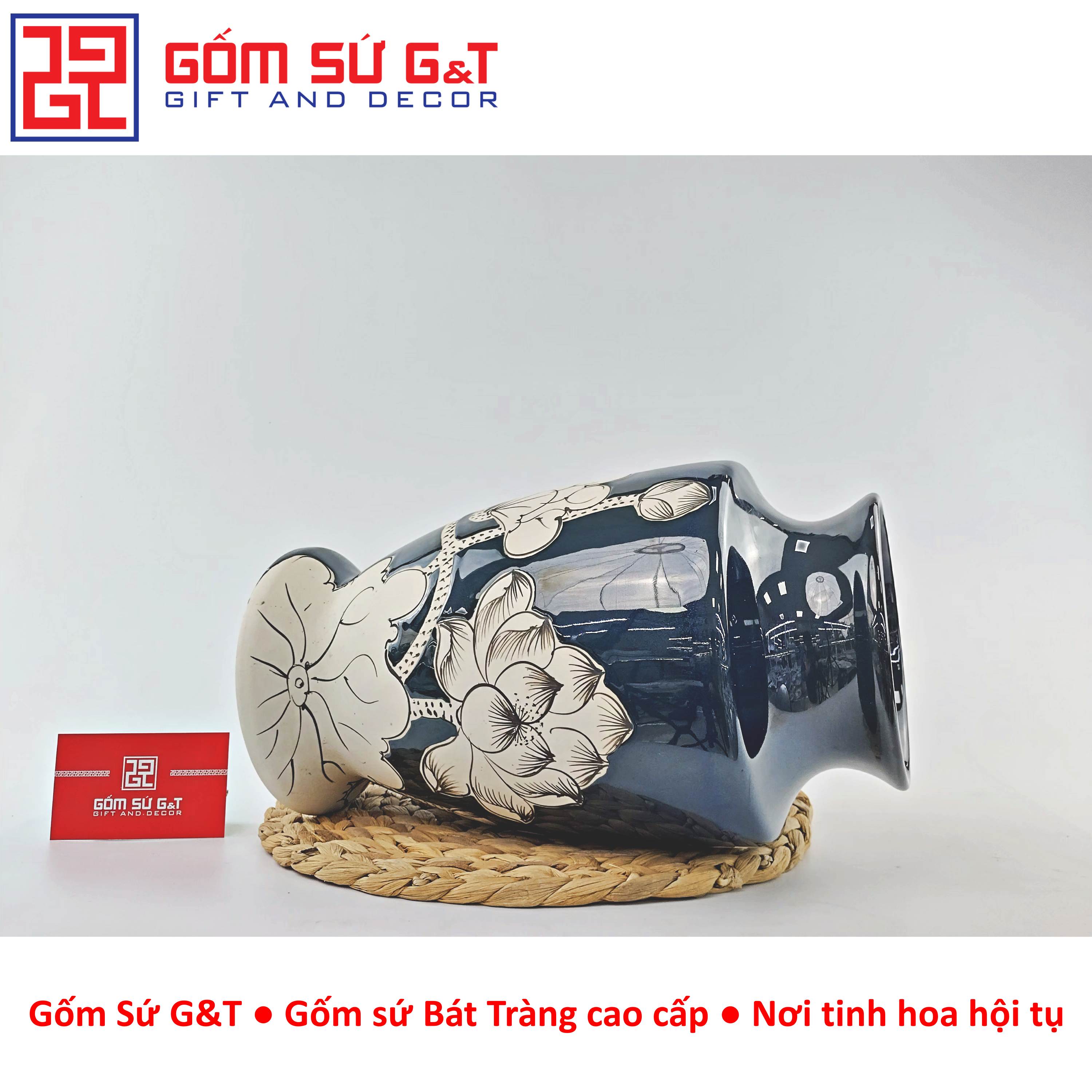 ✨Lọ hoa men hỏa biến dáng chân voi vẽ sen Gốm Sứ G&T