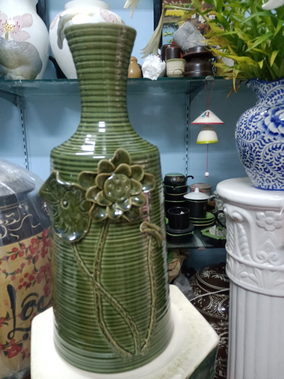 Bộ sưu tập lọ hoa Bát Tràng men xanh đắp hoa nổi có thể dùng làm decor hàng loại 1