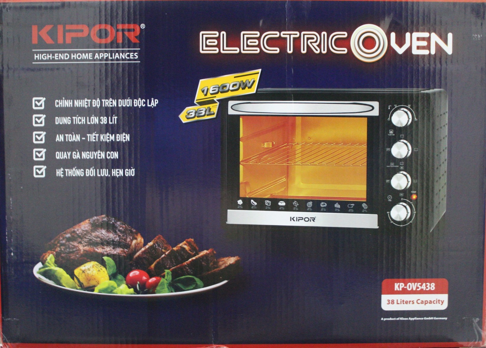 - Nấu nướng nhanh chóng Lò Nướng Điện Kipor KP-0V5438 (38 lít) - Chính Hãng có công suất đạt tới 1600W kết hợp với quạt đối lưu khí nóng giúp thức ăn chín nhanh, chín đều, không sinh ra khói và giữ nguyên hương vị vốn có của thực phẩm. Bạn sẽ nhanh chóng có được những món ăn thơm ngon và tiết kiệm được tối đa thời gian.
