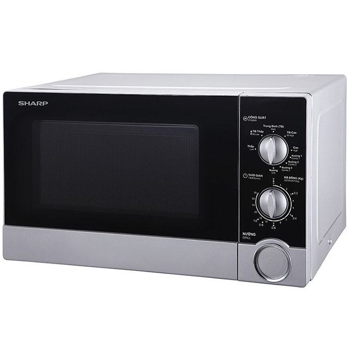 - Chế độ hẹn giờ (phút): 35 Mô tả tính năng Đa chức năng, dễ sử dụng Với lò vi sóng Sharp R-G302VN-S, bạn có thể sử dụng để rã đông thực phẩm, hâm nóng, ngoài ra việc tích hợp chức năng nướng tiện lợi làm phong phú thêm các thực đơn hàng ngày của gia đình bạn. Lò vi sóng Sharp R-G302VN-S giúp bạn nấu chín thực phẩm một cách dễ dàng và tiết kiệm thời gian nhưng vẫn giữ nguyên được hương vị tự nhiên của món ăn. Thiết kế sang trọng, hiện đại và gọn nhẹ Lò vi sóng Sharp R-G302VN-S được thiết kế hiện đại nhưng rất gọn gàng, không chiếm nhiều diện tích khi đặt trong bếp. Cửa lò bằng kính nên bạn có thể dễ dàng quan sát thực phẩm bên trong, thiết kế nút ấn mở dễ thao tác. Sản phẩm không chỉ giúp bạn trong công việc nấu nướng mà còn góp phần tô điểm cho không gian bếp. Dung tích lò 23 lít Lò có dung tích lên đến 23 lít, phù hợp với mọi nhu cầu sử dụng của bạn, giúp bạn tiết kiệm thời gian chế biến thức ăn. Lò vi sóng là người bạn đắc lực cho người nội trợ. Chế biến thức ăn nhanh hơn Lò vi sóng có 5 mức công suất khác nhau, trong đó công suất vi sóng là 800W và công suất nướng là 1000W giúp bạn hâm nóng và nướng chín thức ăn một cách nhanh chóng, dễ dàng. Chất liệu dễ vệ sinh, an toàn cho sức khỏe Khoang lò được làm từ thép không gỉ, bên ngoài phủ lớp sơn tĩnh điện giúp cho việc lau chùi và bảo quản được dễ dàng hơn. Thanh nướng làm bằng thạch anh chịu nhiệt. Bảng điều khiển cơ dễ sử dụng Lò được trang bị núm vặn cơ tùy chỉnh chế độ phù hợp. Bảng điều khiển hỗ trợ ngôn ngữ Tiếng Anh và Tiếng Việt giúp bạn dễ dàng thao tác trong suốt quá trình sử dụng.