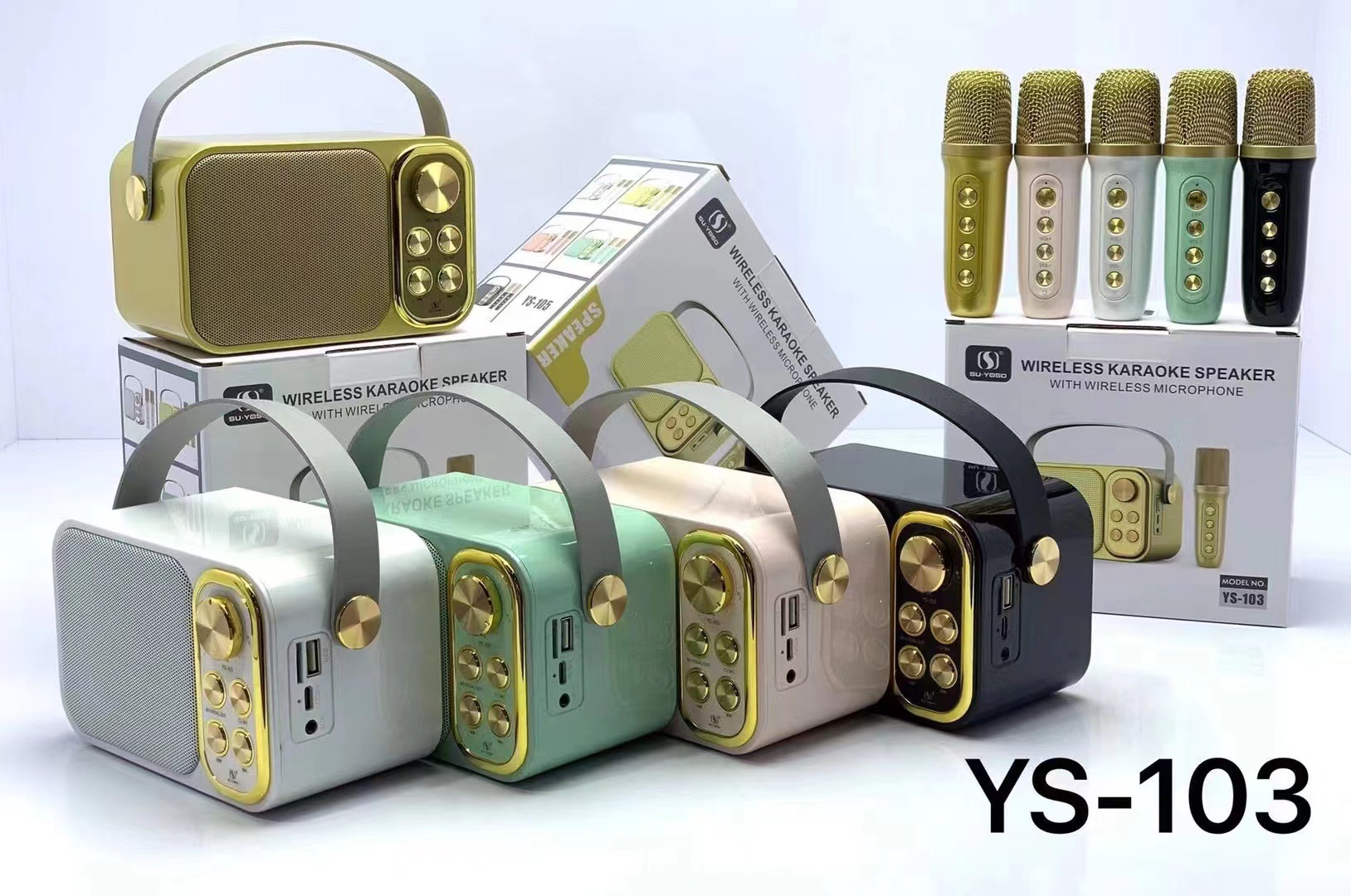 - Nhiều màu sắc - Nhiều sự lựa chọn: Với 5 màu Xanh - Tím - Trắng - Vàng- Đen, Loa Bluetooth Karaoke YS-103 dễ dàng đáp ứng được nhu cầu sử dụng của nhiều đối tượng.