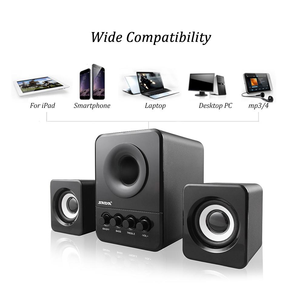 Overview: This SADA V-108 speaker is specially designed for home use. Comes with 3.5mm audio cable USB cable, you can enjoy much wonderful music by connecting it with many kinds of audio devices. It will