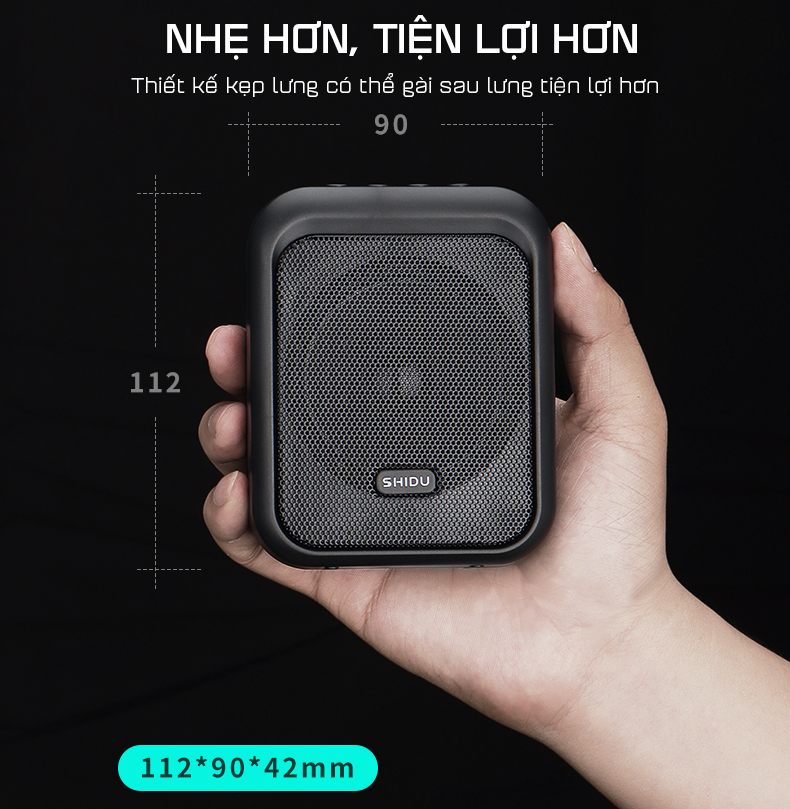 - Máy trợ giảng Shidu SD-S258 với thiết kế nhỏ gọn, công suất lớn 10W kết hợp hệ thống loa kép cho giọng nói trung thực, thời gian sử dụng lên đến 15 giờ phù hợp cho