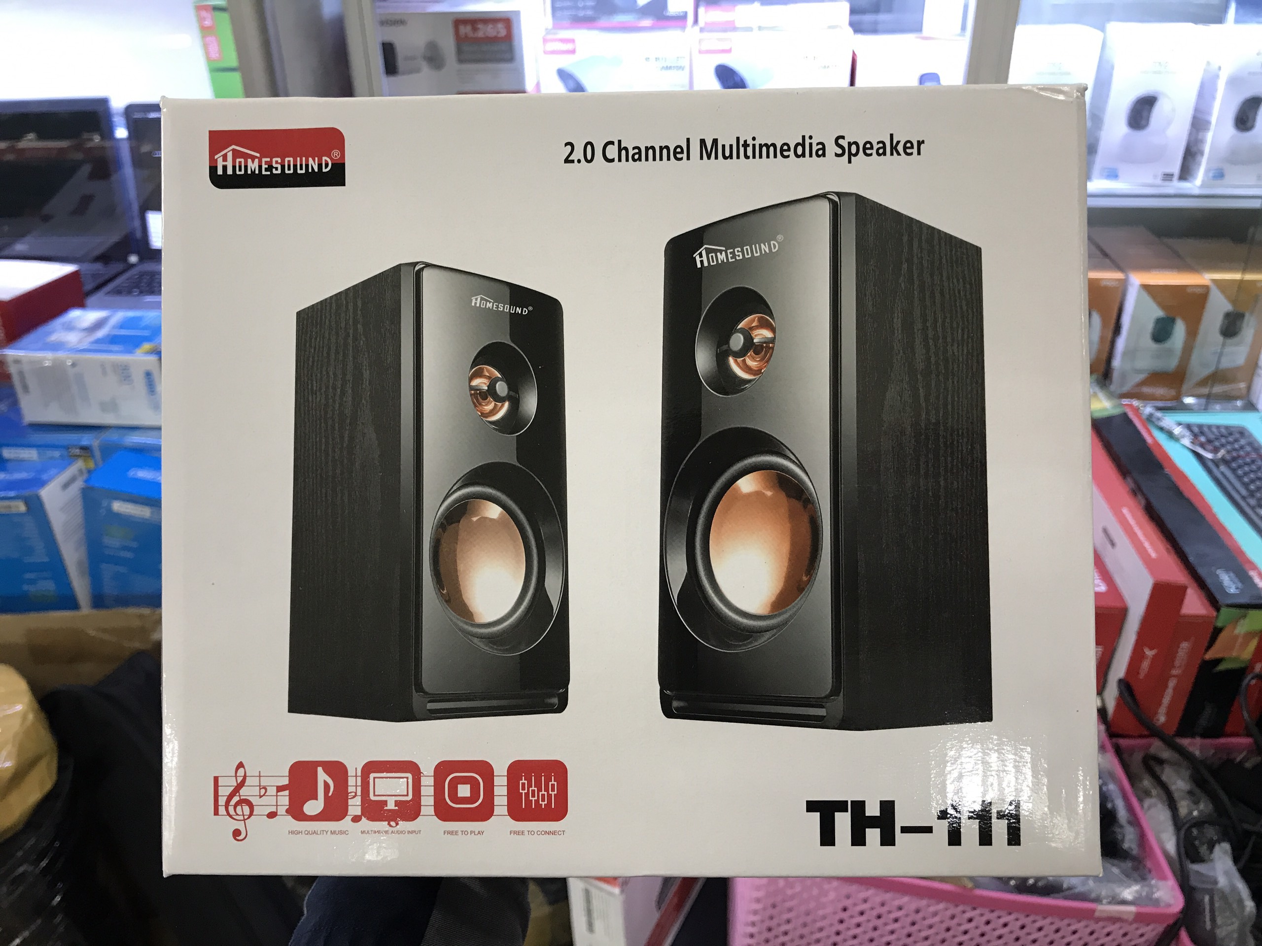 Loa Vi Tính Homesound TH-111 âm thanh sống động nghe nhạc cực chất + Loa vi tính homesound TH111 với kiểu dáng vuông vức, mạnh mẽ có thùng loa bằng gỗ, tông màu đậm, mặt