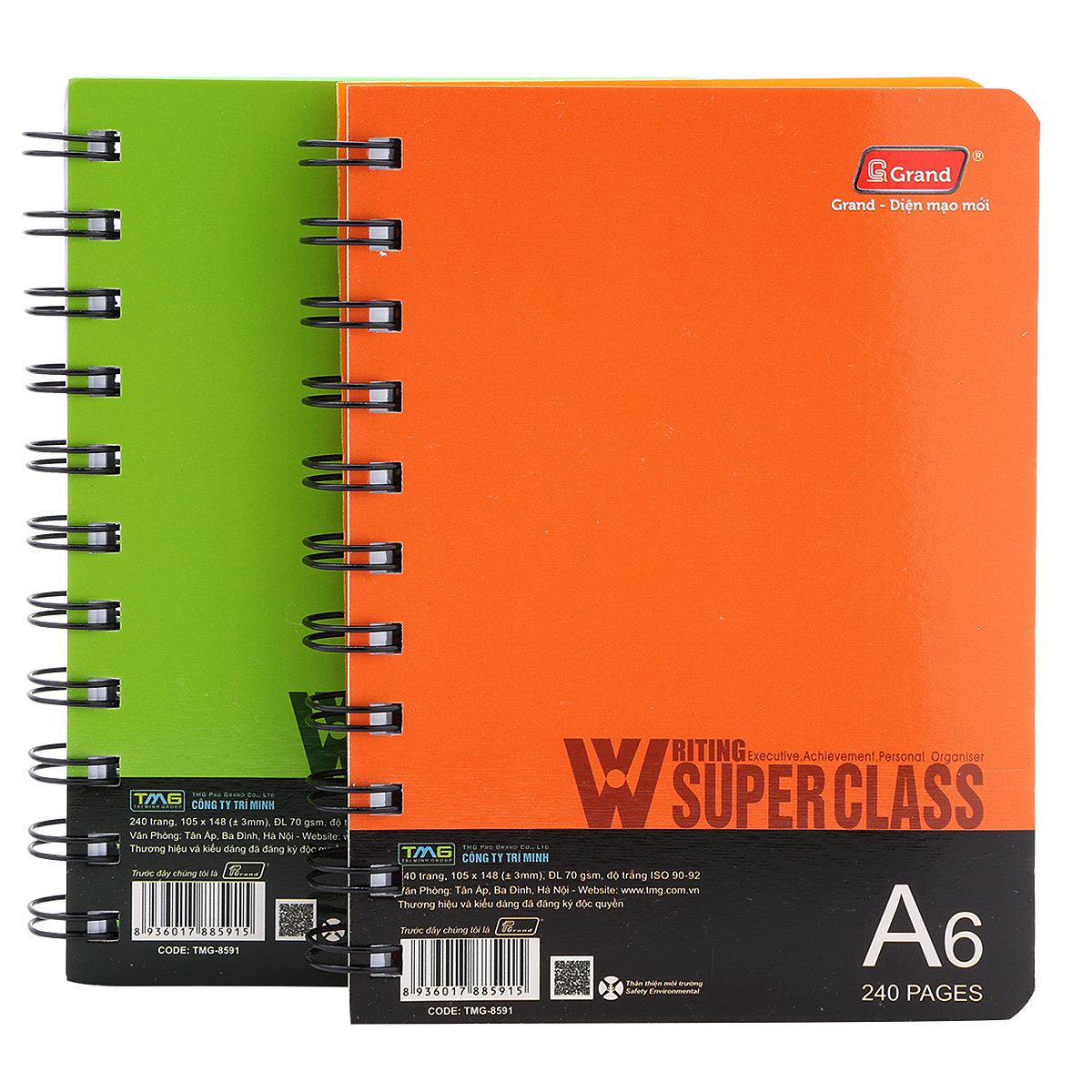 - Lưu Ý màu giao ngẫu nhiên tùy đợt nhập hàng - Lốc 2 Sổ Lò Xo Grand A6 - 240 Trang Bìa Giấy được thiết kế đẹp, sang trọng, chất lượng với chất liệu