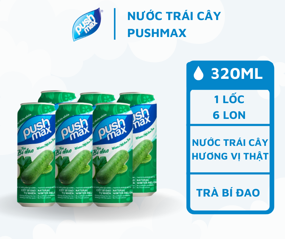 Mua tại TiktokNước trái cây Pushmax được chiết xuất từ nước cốt trái cây tươi, bổ sung các loại Vitamin và khoáng chất, mang lại hương vị tự nhiên đặc trưng của từng sản phẩm. Pushmax Bí đao tự hào là sản phẩm có thị phần đứng đầu trong phân khúc, đặc biệt tại thị trường nông thôn miền Bắc và Bắc miền Trung