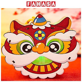 Lồng Đèn Trung Thu Gỗ Mộc Màu : Đèn Đầu Lân - Bách Mộc 01 (Có Kèm Pin) Đèn trung thu được làm từ chất liệu gỗ cứng cáp, thiết kế dễ thương tạo nên