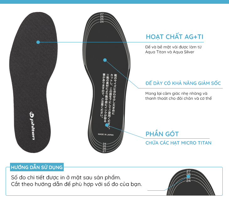 ✨Lót giày trợ lực loại phẳng Phiten metax insole flat type TI463003/TI463004