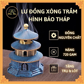 ✨Lư xông trầm đồ thờ cúng bằng đồng hình bảo tháp sơn xanh phụ kiện trang trí ban thờ, bàn làm việc