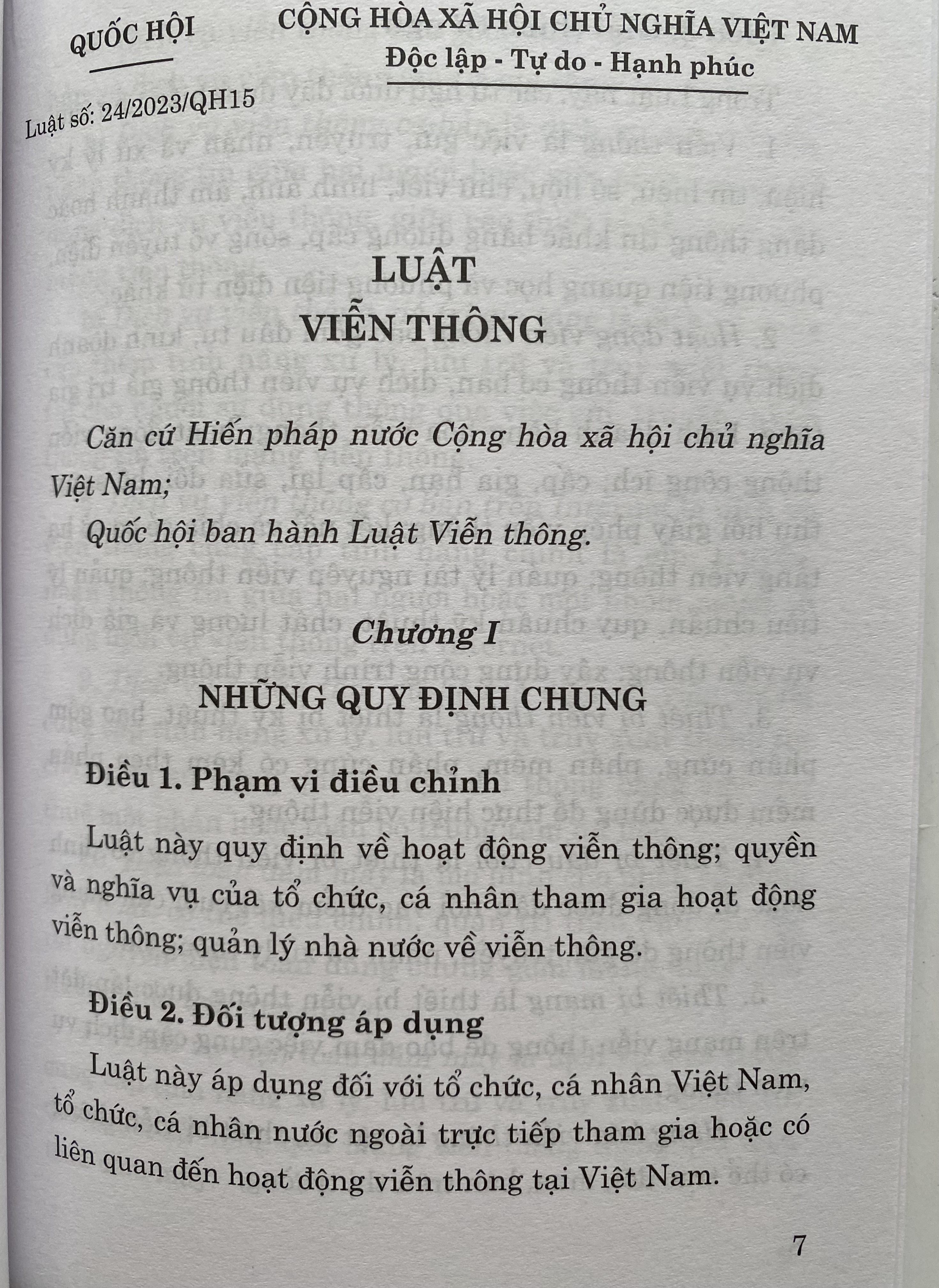 Mua tại TiktokLuật Viễn Thông số 24/2023/QH15 đã được Quốc Hội khoá XV thông qua ngày 24-11-2023. Luật gồm có 10 chương, 73 điều . Luật có hiệu lực áp dụng từ ngày 01-07-2024