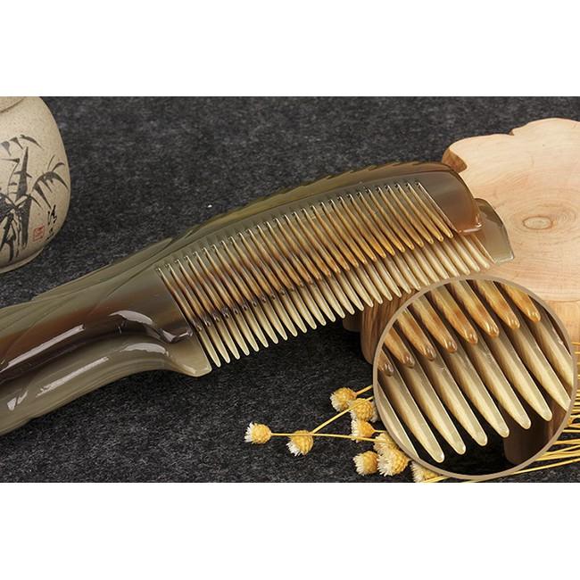 Đây là chiếc lược sừng cao cấp đặc biệt, dày và rất đẹp, răng thưa, đầu răng tròn, vừa để chải các loại tóc xoăn, xù, rối và massage đầu giúp tuần hoàn và lưu