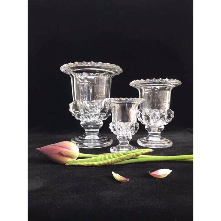 Ly cắm phật thủ được làm bằng thủy tinh, đúc khuôn cực dày, liền khối chắc chắn, có hoa văn nổi thêm sang trọng, nổi bật Chất liệu: thủy tinh trong. Kích thước: cao khoảng