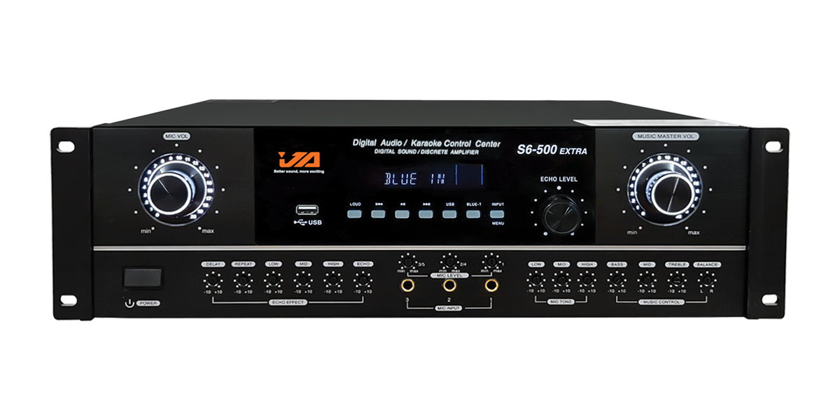 Main đẩy liền Vang JA S6-500 - Hàng Chính Hãng MAIN LIỀN VANG S6 - 500 là dòng thiết bị âm thanh thông minh cho dàn combo Karaoke của bạn. Sản phẩm được tích hợp tính năng củaMAIN CÔNG SUẤT và VANG CƠ, là sự kết hợp giữa tính năng công suất với mạch chỉnh âm hiện đại của vang số cho ra âm thanh đầu ra hay và cực kỳ chất lượng. Với sự tiện ích 2 IN 1 của MAIN LIỀN VANG S6 - 500, giúp cho người tiêu dùng tiết kiêm được chi phí đầu tư cho bộ dàn Karaoke tại gia cũng như tiết kiệm được diện tích sử dụng. Mặt trước của main liền vang: + Với thiết kế hình hộp chữ nhật, kích thước nhỏ gọn 530 x 500 x 220 mm (Rộng x Dài x Sâu) nên bạn dễ dàng sử dụng mà không chiếm nhiều diện tích khi tích hợp với Micro và loa,... + Toàn bộ linh kiện của thiết bị đều được bảo bọc bởi vỏ máy làm từ chất liệu hợp kim cao cấp, bề mặt sơn tông màu đen sang trọng, thời thượng nâng cao khả năng chống han gỉ, bảo vệ sản phẩm bền bỉ hơn. + Main có màn hình LCD ở giữa báo chế độ cường độ âm thanh với các nút vặn volume tắt mở nhạc, tắt mở mic, chỉnh lớn nhỏ Echo, phim bấm được thiết kế 2 bên góp phần tăng thêm tính thẩm mỹ của thiết bị. + Có nút bấm nhanh chuyển chế độ USB, Bluetooth cùng với nút INPUT có chức năng chuyển chế độ kết nối đầu vào trên S6 - 500. + Main có 5 ngõ kết nối micro: 3 cổng ở mặt trước, 2 cổng ở mặt sau. Mặt sau của main liền vang: + Mặt sau của thiết bị là hệ thống các đường kết nối tín hiệu âm thanh vào và ra, các cổng kết nối thông dụng của thiết bị âm thanh và một số thông tin kỹ thuật cơ bản khác. Bên cạnh đó, mặt sau của main còn có quạt tản nhiệt, giúp cho main không bị quá nóng khi hoạt động với cường độ cao. MAIN LIỀN VANG S6 - 500 được tích hợp bởi chip xử lý âm thanh, sau khi âm thanh được main liền vang S6 - 500 xử lý và khuếch đại ra lo chuyên nghiệp với bản nhạc đầy đủ âm sắc, hạn chế tối đa tạp âm, méo hay vỡ tiếng, chống hú rít. Với thiết kế 2 kênh riêng biệt, với mức công suất 500W/ 8Ω và 600W/ 4Ω cùng với 4 đường ra loa nên tăng khả năng kéo được 2 cặp loa Bass mang đến âm thanh sống động, chân thực. Được hỗ trợ 4 cổng kết nối Bluetooth-USB-Optical-COAXIAL-AUX1/AUX2 nên người dùng dễ dàng kết nối với các thiết bị như smartphone, laptop, tablet, tivi thông minh… mang đến trải nghiệm giải trí không giới hạn cho gia đình. Dễ dàng kết hợp với các dòng thiết bị âm thanh được trang bị hệ thống kết nối thông minh, linh hoạt thuận tiện cho quá trình phối ghép với các thiết bị như loa karaoke, loa sub, micro không dây...đem tới bộ dàn hiện đại và chuyên nghiệp nhất và đáp ứng tối đa nhu cầu karaoke, nghe nhạc tại gia hoặc các không gian mở ngoài trời.