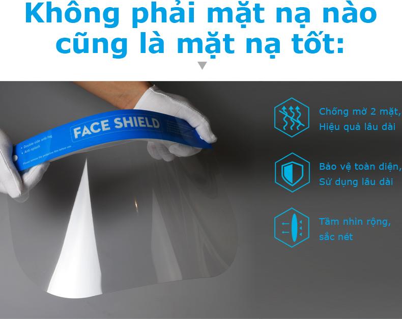 Mặt nạ chống dịch với chất liệu PET kháng khuẩn, trong suốt, thân thiện với môi trường, chống mờ, chống lóa, chống giọt bắn và các virus lây nhiễm qua đường hô hấp. Bảo vệ