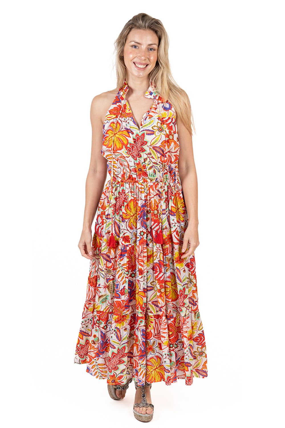 Maxi Cotton Cao Cấp Luna Llena, Chất cotton mềm mại, dày dặn, họa tiết trang nhã. Cut out phần lưng sau. Dài 130 (40x130) Phù hợp: Dự tiệc, dạo phố, đi biển hoặc công sở.