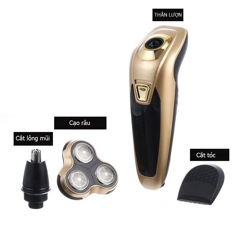 Máy cạo râu đa năng 3in1 cạo râu, cắt tóc mai và tỉa lông mũi có thể sạc lại. • Đầu cạo râu gồm 3 lữoi dao cạo râu bằng thép không gỉ • Máy cạo thông minh thiết kế dao cạo 360 cạo râu dễ dàng êm ái • Dung lượng pin lên tới 2-3 giờ chạy liên tục • Hệ thống dao cạo 360 giúp làm sạch bề mặt, cạo sát phần lông thừa. • Cắm sạc trực tiếp qua ổ điện, không cần đầu sạc ngoài. • Ngoài ra dụng cụ cạo râu đa năng có thể dùng cho các phần khác trên cơ thể, cạo lông nhẹ nhàng. Đặc điểm: