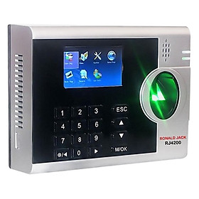 Khả năng quản lý lớn Máy chấm công vân tay và thẻ cảm ứng Ronald Jack RJ4200 sở hữu gam màu đen tuyền viền bạc sang trọng phù hợp với nhiều không gian văn phòng.
