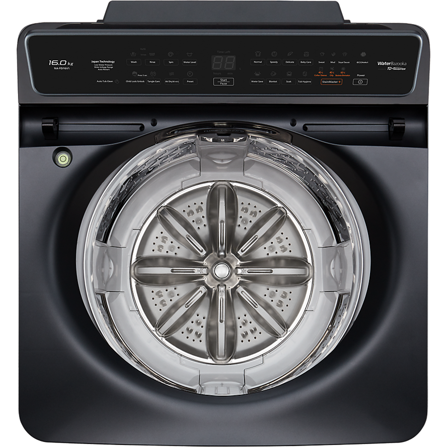 Đặc điểm nổi bật - Khối lượng giặt 12.5 kg thích hợp với gia đình có từ 7 thành viên trở lên. - Công nghệ TD Inverter tiết kiệm điện, nước hiệu quả. - Hệ thống bọt siêu mịn Active Foam dễ dàng mang đến quần áo tinh tươm. - Xoáy nước siêu mạnh Water Bazooka đem lại hiệu quả giặt mạnh mẽ, sạch tối ưu. - Công nghệ StainMaster giúp loại bỏ các loại vết bẩn khó giặt. - Chương trình giặt lưu hương lưu giữ hương thơm bền lâu. Tổng quan - Loại máy giặt:Cửa trên - Lồng giặt:Lồng đứng - Khối lượng giặt:12.5 Kg - Số người sử dụng:Trên 7 người - Kiểu động cơ:Truyền động gián tiếp (dây Curoa) - Tốc độ quay vắt tối đa:1400 vòng/phút - Chất liệu lồng giặt:Thép không gỉ - Chất liệu vỏ máy:Kim loại sơn tĩnh điện - Chất liệu nắp máy:Kính cường lực - Sản xuất tại:Việt Nam