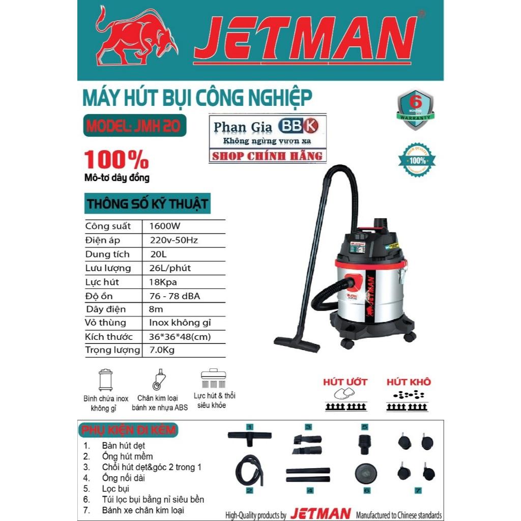 ✨Máy Hút Bụi Công Nghiệp JETMAN 20L, Công Suất 1600W, Mô Tơ 100% Dây đồng, Bảo Hành 1 Năm