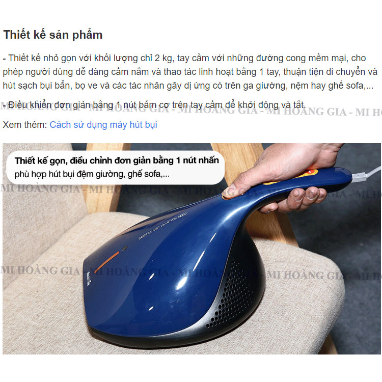 - Loại máy: Máy hút bụi cầm tayMáy hút bụi đệm giường