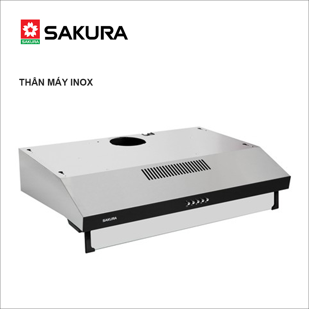 -Máy hút khói SAKURA, treo tủ kệ -Hút - xả trực tiếp bằng ống thoát -Khử mùi bằng than hoạt tính -Thân máy inox -2 motor, 3 nấc tốc độ, 1 đèn chiếu sáng -Lưới