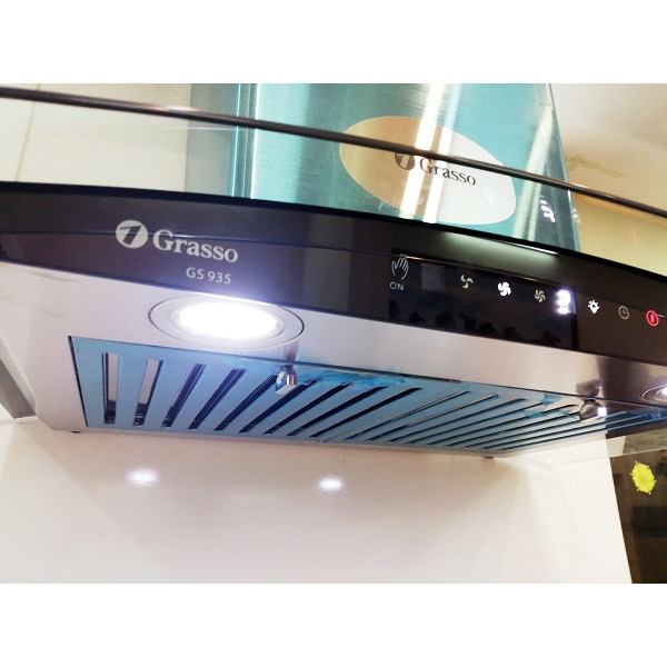 Điểm đặc biệt nhất mà GS 935 sở hữu không hẳn là một bảng điều khiển phím nhấn cảm ứng thông thường mà chế độ điều khiển thông qua cử chỉ bàn tay cực thông minh. Chuyển động bàn tay của bạn từ trái qua phải bạn có thể dễ dàng bật chiếc máy hút mùi của mình, lặp lại hành động một lần nữa để điều chỉnh công suất lên mức độ cao hơn. Máy hút mùi GS 935 có 3 mức công suất để bạn lựa chọn phù hợp với nhu cầu nấu nướng của mình. Để tắt máy hút mùi bạn chuyển động bàn tay từ phải qua trái, máy hút mùi sẽ vẫn hoạt động và tắt sau 3 phút nữa, biểu tượng đồng hồ nhấp nháy. Chuyển động bàn tay từ phải qua trái một lần nữa để tắt máy hút mù ngay, vừa tiện vừa vui đúng không nào.