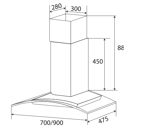 Thông số kỹ thuật: • Máy hút mùi kính cong • Thân máy bằng inox sáng đẹp • Kính cường lực dày 08mm tráng men bóng cao cấp • Điều khiển phím bấm 3 tốc
