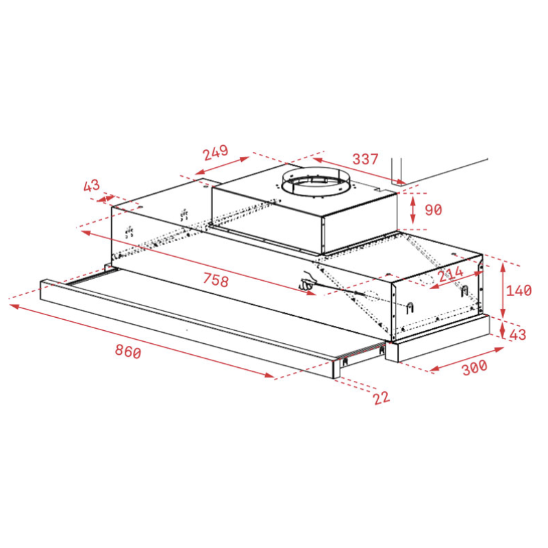 Kiểu máy toa kính Điều khiển: cảm ứng 4 tốc độ Khử mùi bằng than hoạt tính Lưới lọc Aluminum 5 lớp Chất liệu: Inox – Kính Công suất động cơ: 198W Kích thước: 900mm