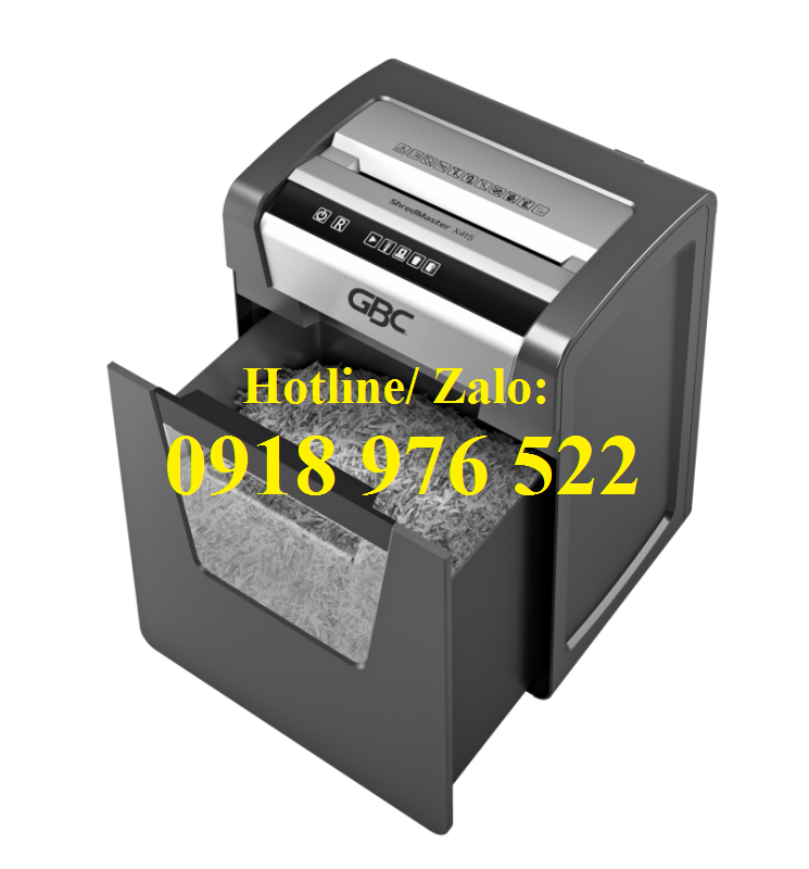 MÁY HỦY GIẤY GBC SHREDMASTER X415 Thông số kỹ thuật: - Kiểu hủy: Hủy vụn A4 paper - Kích cỡ hủy: 4 x 40 mm - Công suất hủy: 15 tờ (80gsm/A4), 17 tờ (70gsm/A4). - Hủy :