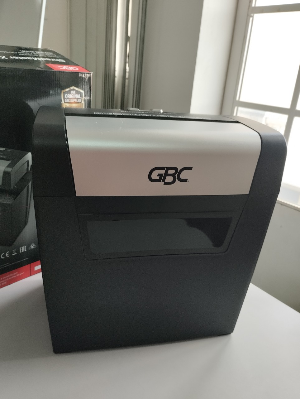 - Máy Hủy Giấy GBC DUO - Hàng Chính Hãng có được thiết kế gọn gàng cùng màu sắc hiện đại dễ dàng bố trí ở các văn phòng công ty. Dung lượng bình chứa