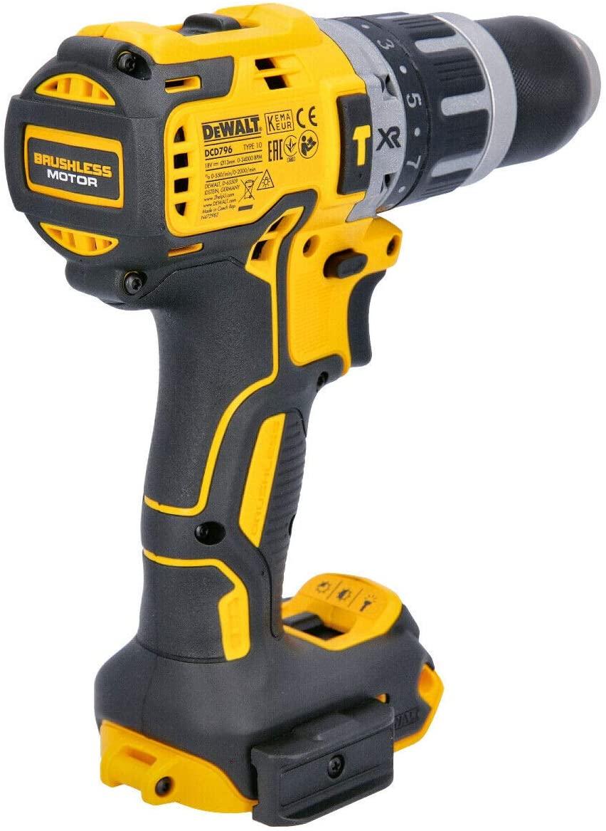 - Máy khoan, vặn vít động lực dùng pin 18V DEWAL DCD796M2-B1 không kèm pin và bộ sạc, thiết kế vỏ máy bằng nhựa cao cấp, tay cầm bọc cao su mềm dễ cầm nắm.
