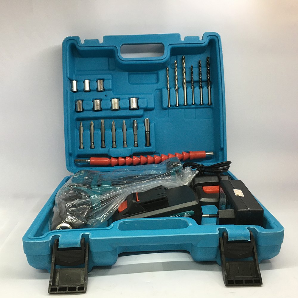 1 thân máy, 1 sạc ADAPTER , 2 pin, 1 hộp đựng và bộ phụ kiện 24 chi tiết