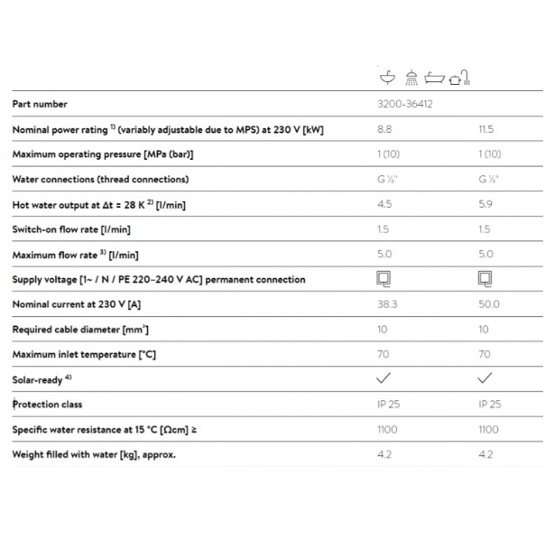 - Hệ thống Đa nguồn MPS xác định mức tiêu thụ điện năng tối đa trong quá trình lắp đặt: 8,8 hoặc 11,5 kW (ở 230 V).