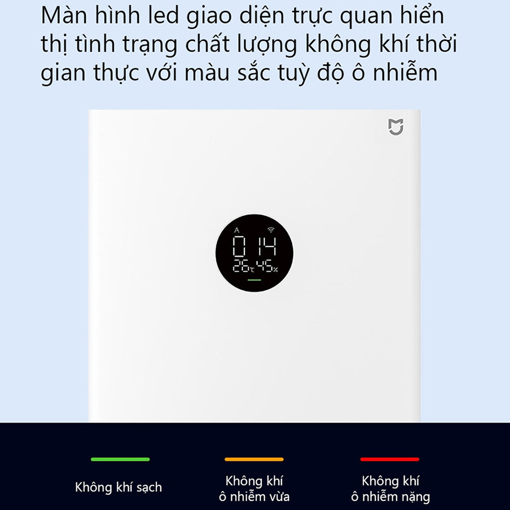 Máy lọc không khí Mijia Air Purifier 4 Lite được trang bị cảm biến laser có độ chính rất xác cao, cung cấp kết quả dựa trên chất lượng không khí ở trong nhà ngay thời gian thực cực kỳ chính xác. Khi hệ thống dò được chất lượng không khí kém, nó sẽ hiện thanh màu đỏ, màu cam cho chất lượng bình thường và màu xanh lá cây là chất lượng không khí tốt nhất.