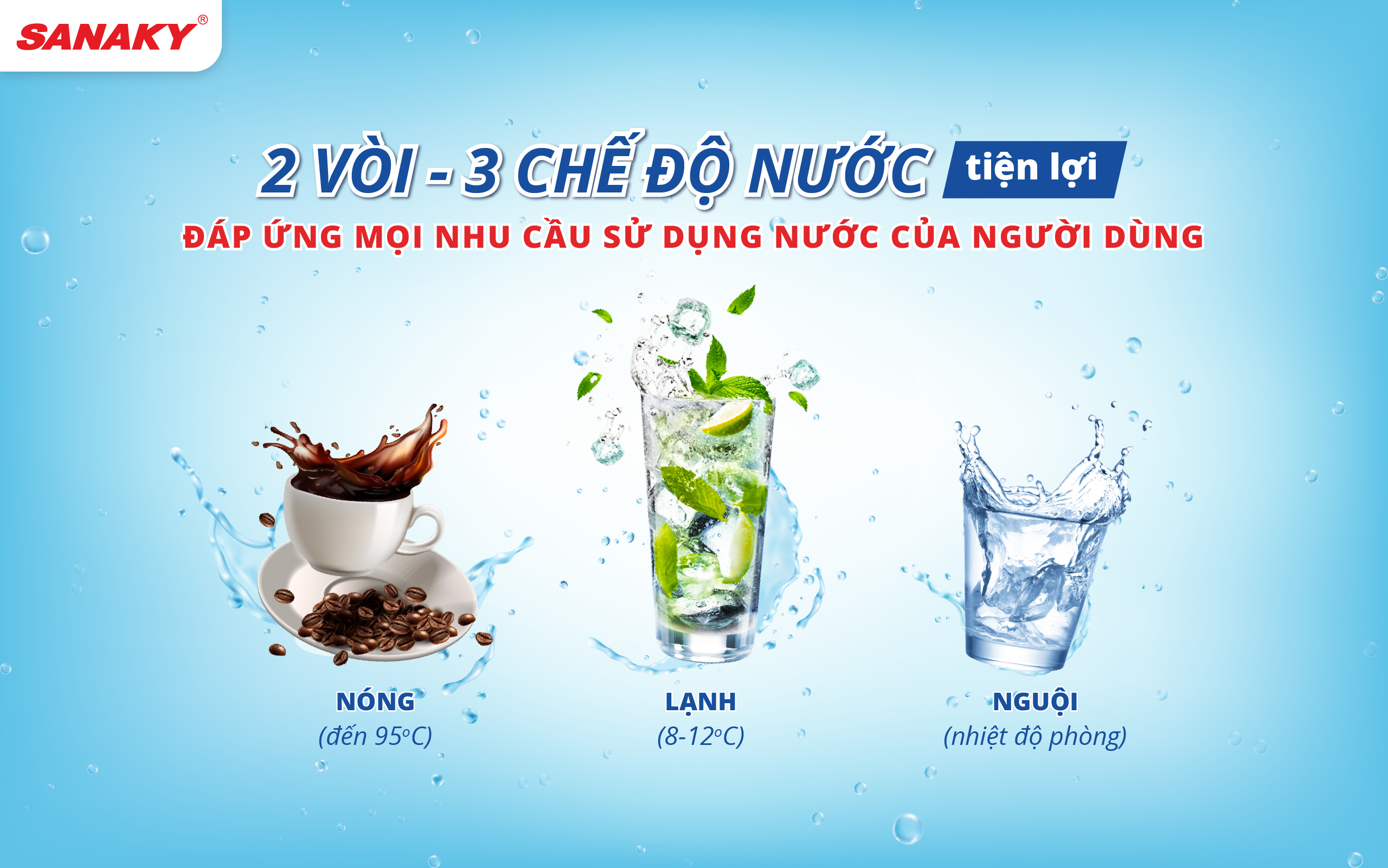 Máy lọc nước Sanaky 2 vòi 3 chức năng.Nóng - Lạnh - Nguội